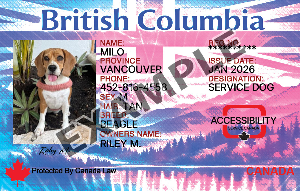Your dog gets a high-quality, wallet-style ID card (plus a digital version for your phone), giving you both convenience and credibility wherever you go. Available in many designations, including service dogs, emotional support animals (ESA), and more.